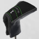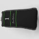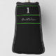 A black background. Personalize and add a number and your name. The name is written with a modern and trendy hand lettered style script. Slim green stripes.