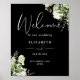 This elegant black and white greenery leaves wedding welcome sign can be personalized with your information in chic typography. Designed by Thisisnotme©