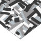 Black, white, and grey abstract geometric patches create a visually striking and modern home decor piece, adding a touch of contemporary elegance to any space.