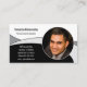 This business card design features a photograph on black, grey, and white abstract background with all text on the front. A back holds a QR Code. Personalize the text fields, remove text or edit using the design tool to select a font style, size, and colour you prefer. Replace the placeholder photo with yours (a square photo works best) and add a link for your QR code. The code can send customers to a page of referrals, photographs or other business related link. You can also add this design to the business card magnet or one of the other products, where it fits appropriately, shown in the TRANSFER scroll bar on this page.