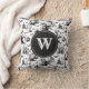Black & White Halloween Toile Monogram Throw Pillow