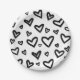Black & White Hand-Drawn Painted Doodle Hearts Paper Plate