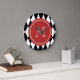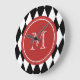 Black White Harlequin Pattern, Red Monogram Large Clock