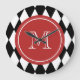 This trendy, mod, black and white harlequin diamond pattern is a perfect background for a red and white circle tag with your initial on it in white text in an elegant font. GraphicsByMimi© Personalize this fun, bold, modern yet retro black chequered pattern design with your monogram, text, initial or name. Use the template field or use the "customize it" option for a full edit menu. A classic, traditional style emerging as a new fashion trend. Other colours available.