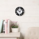Black White Heart Family Name Round Clock