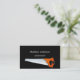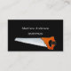 A black background. Decorated with a saw. Personalize and add your business name and a text on front. White text.