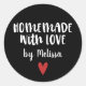 A personalized "homemade with love" sticker on a black coloured background. Make it yours by adding your own name. A pretty finishing touch for all of your handmade gifts. Designed for you by Blackberry Boulevard.