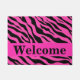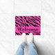 Welcome visitors to your home with this wild splash of colour of bright hot pink fushia and black zebra skin pattern door mat. This door mat is customized with the word Welcome that you can change to another word or name. A bright or hot pink fuchsia strip gives an area for personalization. Enjoy this popular and contemporary design that will add a trendy and colourful home decorative accent. This design is available in several colour combinations in this store.