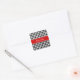 Black and White Chevron ZigZag Pattern, Red Ribbon Name Monogram Label