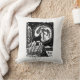 Black & White Howling Husky at Night Linocut Throw Pillow