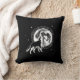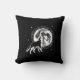 Black & White Howling Husky Moon Linocut Pattern Throw Pillow