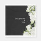 Black with White Hydrangeas Wedding napkin. White typography. Modern Design and font. Elegant. Black and white. Birthday.