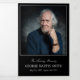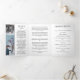 Black trifold funeral program where you can add several photos of your loved one along with an obituary, order of service, their favorite psalm, poem, or prayer, and acknowledgements in elegant fonts. In loving memory is written on the cover of the photo funeral program in an elegant script. Black and white funeral program personalized with photo and text, the photos printed in color. The cover and back are black while the program and obituary printed inside the program are printed in black text against a white background.