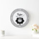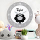 Black White Lamb Kawaii Kid Nursery Script Name Large Clock