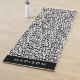 Trendy, stylish yoga mat featuring a black & white leopard animal print pattern. Personalize the custom yoga mat by adding your name or custom text.