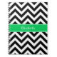 Black and White Large Chevron Zig Zag Pattern, Emerald Green Ribbon Name Monogram Label