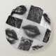 Black & White Lips Collage Round Throw Pillow