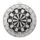 A classic, elegant dartboard design with alternating black marble and faux marble triangles. The outer circle is white marble and has black arched text in it: the family name in the upper part and a custom message in the lower part.