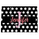 Give your gift in style and with a custom name and message. White polka dots with a black background. Choose to write a message or use a monogram in pink.