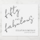 “Fifty and fabulous.” Own it and usher in 50 with style! This sophisticated minimal 50th birthday personalized sparkling wine label will help make her milestone birthday even more special. Dramatic black handwriting script calligraphy and simple serif typography overlay a clean, white background. Personalize with her name and date of event. Matching and coordinating invitations, address labels, banners, paper napkins and other party supplies are also available.