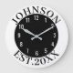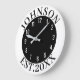 Black & White Minimal Personalized Family Name Est Large Clock