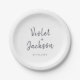 Modern minimalist wedding paper plates feature bold handwritten brushy script bride and groom's name in charcoal black and white colour, simple and stylish.