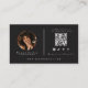 Make a lasting impression with this modern black and white business card designed specifically for photographers and creative professionals. This card blends style and functionality, featuring space for your portrait or logo and a scannable QR code that links directly to your online portfolio, Instagram, booking site, or contact form.