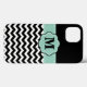 Show off your personal style in a fun way with this black and white chevron with mint green accent monogram phone case.