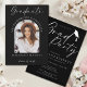 Proudly celebrate your graduate’s incredible achievement with this elegant black and white photo graduation party invitation. This stylish invite features a chic black background, beautiful script lettering, and a customizable photo of your graduate. Perfect for announcing your child’s graduation and inviting family and friends to a heartfelt celebration. A timeless and stylish choice for honouring your child’s big milestone and making the day truly special! Personalize with the graduate’s name, degree, university, event details, and RSVP information. If you need assistance, feel free to message me—I’d love to help!