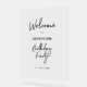 Welcome your guest with this modern birthday welcome sign. This sign features a simple script "Welcome to Birthday Party" in black & white colour theme. You can customize the name and the date. Matching invitations and party supplies are available at my shop BaraBomDesign.
