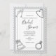 Fun modern black & white design bridal shower invitation with hand drawn wedding graphics in each corner. Perfectly framed with a white scalloped edge with black outline. Coordinating fonts add to the beauty of this design.