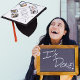 Modern and unique graduation photo collage for her in black and white with cute graduation cap in each photo frame. Personalize with your grad's photos, name and other details.