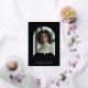 Introducing our black and white arch photo graduation announcement—a sleek, modern keepsake designed with minimalist elegance. The front features an arch-shaped photo with a thin border and the word "grad" partially overlaying the photo in real gold foil. Personalize the template by adding your graduation year, name, and school to create your announcement with ease. On the back, upload a full-sized photo and include a signature line. © Kimbellished, LLC