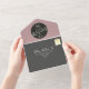 Unique, minimalist, modern, contemporary simplistic dusty rose, black and white all-in-one wedding invitation with QR code, monogram with hand drawn love couple birds, trendy handwritten script and custom picture of the at the back.
