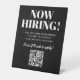 Customize this Black & White Modern QR Code Now Hiring Pedestal Sign with your URL and text.