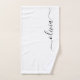 Black and White Simple Script Monogram Name bathroom Towels. This makes the perfect sweet 16 birthday, wedding, bridal shower, anniversary, baby shower or bachelorette party gift for someone that loves glam luxury and chic styles.