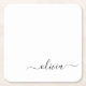 Black White Modern Script Girly Monogram Name Square Paper Coaster