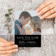 Elegant Black Modern Typography Minimalist Photo Wedding Save The Date Invitation Card. Let your family, friends and colleagues know that you have set a date for your wedding celebration with this elegant, stylish and modern wedding save the date invitation card. All the texts are pre-arranged for you to personalize easily and quickly with your own details.