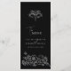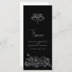 Black and white fleur de lis stylized spring or summer wedding dinner menu. Edit this 4 course menu with your own meal option wording. Modern yet classical hand drawn fleur de lis and blossom, vines and butterflies art wedding menu. © Original hand drawing and design by Sarah Trett for www.mylittleedenweddings.com exclusively on zazzle.