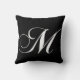 Black White Monogram M Pillow. This elegant swirl font transforms your monogram initial into an elegant monogrammed designer pillow. Great for your bedroom, favourite chair, as fun decor in your family room or formal decorative addition to your living room. Customize with your background colour. For other letters of the alphabet please contact MONOGRAMGALLERY. Elke Clarke©