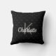 Black white monogram name script throw pillow