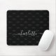A chic black background. Personalize and add a name and your monogram, initials. The monogram in grey as a pattern in the background. The name is written in white with a modern hand lettered stylie script with swashes. To keep the swashes only delete the sample name, leave the spaces or emoji's in front and after the name.
