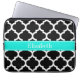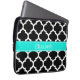 Black White Moroccan #5 Brt Aqua Name Monogram Laptop Sleeve