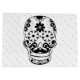 Cute sugar skull in black and white with a cute moustache and black polka dots.