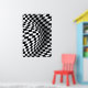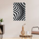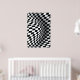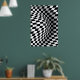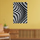 Black white op art optical illusion abstract custom print/poster, featuring a geometric B&W optical illusion checker pattern of squares, rectangles and lozenges that looks stretched.