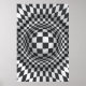 Black white op art optical illusion abstract custom print/poster, featuring a geometric B&W optical illusion chequered pattern of squares, rectangles and lozenges that form a circle and a sphere in the centre.
