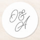 Black & White Oversized Script Monogram Wedding Round Paper Coaster