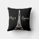 White and graphic Eiffel Tower illustration on black, personalized with name. A glamourous Paris-themed idea for a chic decoration