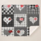 Black White Patchwork Hearts Seamless. Sherpa Blanket