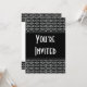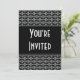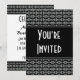 Elegant black and white party invitation. Add your own event details. Available as a matching set on flat cards, folded cards, postcards, photocards and postage stamps.